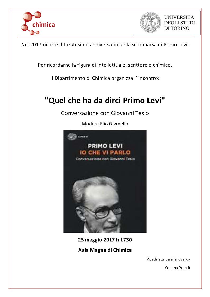 #PrimoLevi" a 30 anni dalla scomparsa. Incontro a@dipchim il 24/5 https://goo.gl/nWJYSE pic.twitter.com/n0L9Pm5mCe