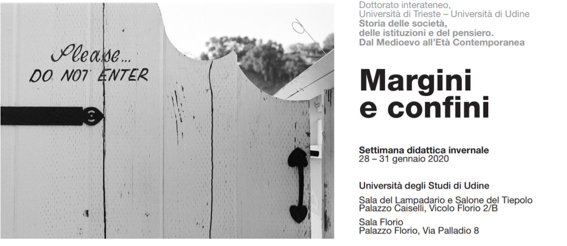 Dal 28 al 31 gennaio si terrà la Settimana didattica dottorale invernale Margini e confini nell'ambito del Dottorato interateneo UniTS - Uniud "Storia delle società, delle istituzioni e del pensiero. Dal Medioevo all’Età Contemporanea". Leggi qui ► https://www.units.it/news/settimana-didattica-dottorale-28-31-gennaio-2020-margini-e-confini?=&share=site …pic.twitter.com/xv9lJuWFhX