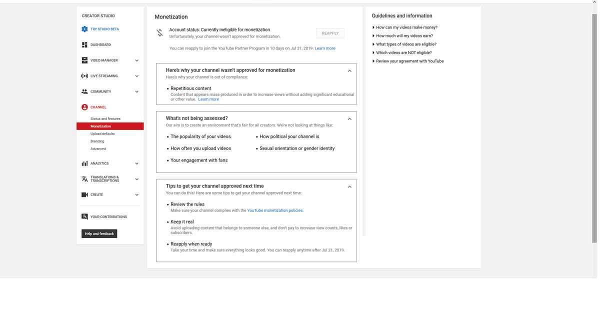 Here's a screen of the monetization page and link to my channel: https://www.youtube.com/channel/UCrj10lembQkoijcXv6Bn55g …pic.twitter.com/07kV2uftQO