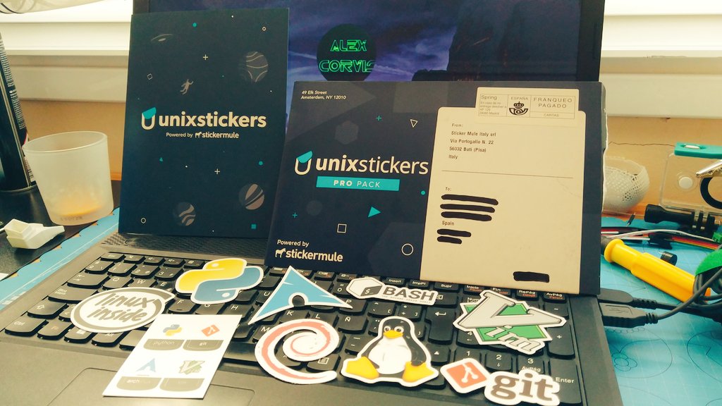 YES! Finally I got @unixstickers in my hands and soon stuck on my laptop 💻! It's a pleasure to: 'Support and grow #opensource software...by printing totally KICK ASS STICKERS' Let me say: I could not agree more!!! 👏😍 Thanks!pic.twitter.com/sKH7o6naJ0