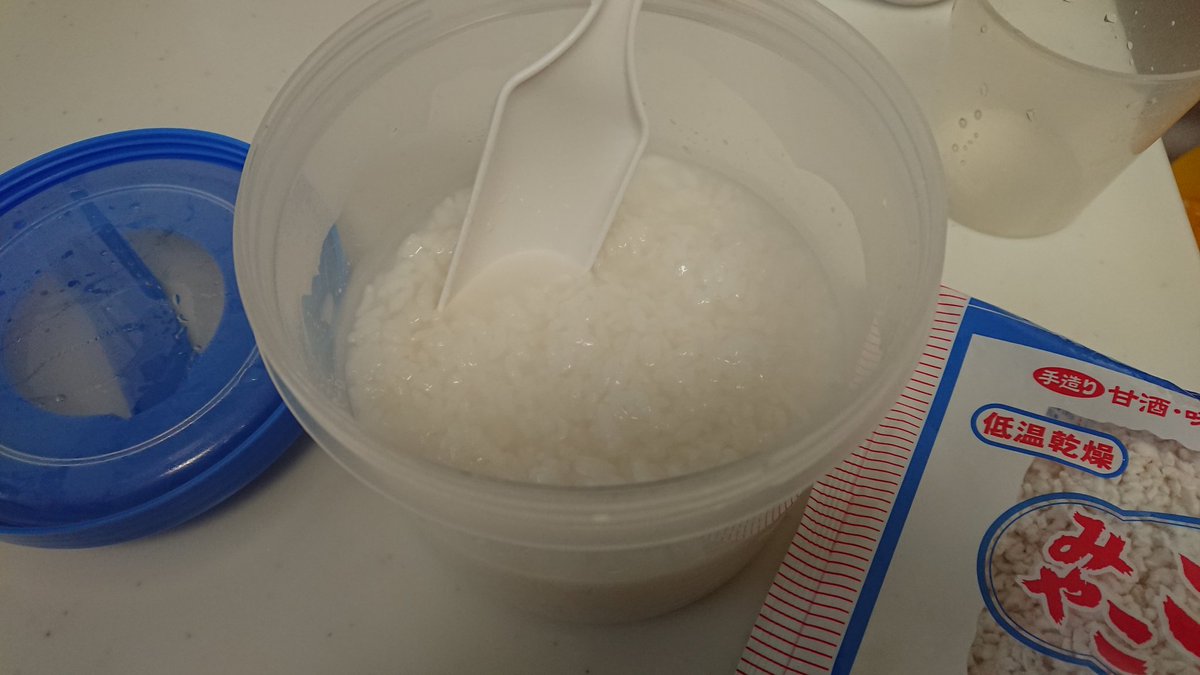 タニタ ヨーグルティアによる甘酒つくり 1合の米でお粥を作る お粥と米麹200gをよく混ぜる ヨーグルティアに入れ 60℃ 8時間 たまにかき混ぜる 出来上がり! この米麹はちょっと高いので、Amazonで800g,800円位を注文 コレでコスパも良くなる!pic.twitter.com/QASZBNC8xc