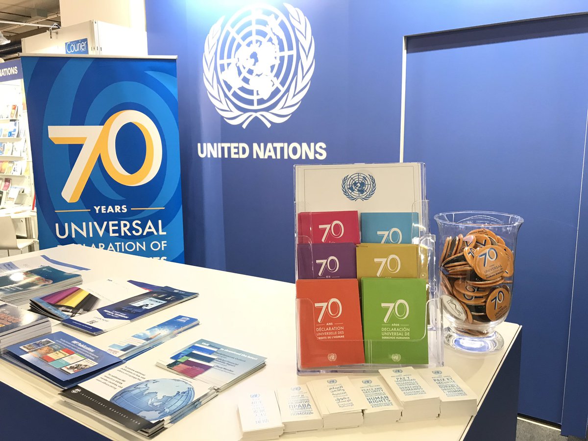 The Universal Declaration of Human Rights is turning 70 in December!Visit @UN stand (J 72, Hall 4.2) at the #2018FBM and get a free copy of the special edition of the UDHR. #standup4humanrights #onthesamepagepic.twitter.com/cgI7fBwy6h
