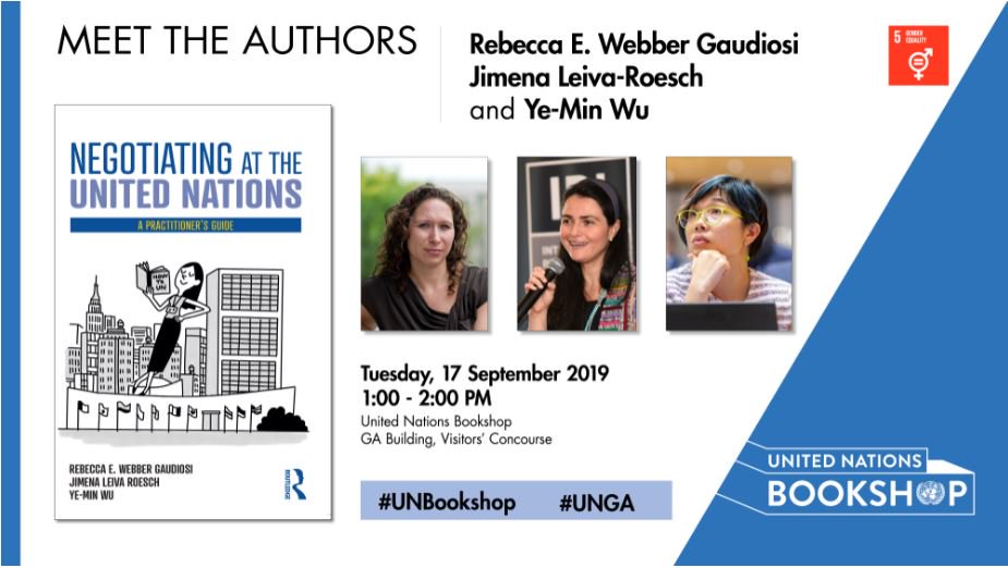 Ever wondered how diplomats negotiate at the @UN? Join our "Meet the Author" event on 17 Sep at 1pm at the #UNBookshop to find out from the 3 women who wrote "Negotiating at the United Nations". RSVP now: http://bit.ly/332wMXa pic.twitter.com/lZ3iH9xQgr
