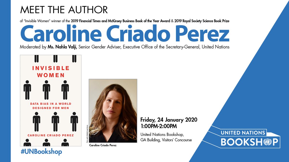 TODAY at the #UNBookshop award-winning feminist campaigner @CCriadoPerez discusses her bestselling book #InvisibleWomen with @UN Sr Gender Advisor @nahlav. Don’t miss this inspirational conversation about #genderequality, happening from 1-2pm.pic.twitter.com/gCL3eoLJ4A