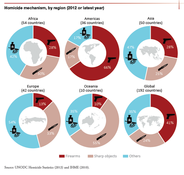 Latest Global Study on Homicide by @UNODC shows dominant use of firearms in the Americas: http://bit.ly/1qovtrl pic.twitter.com/jJdkbhkg3t