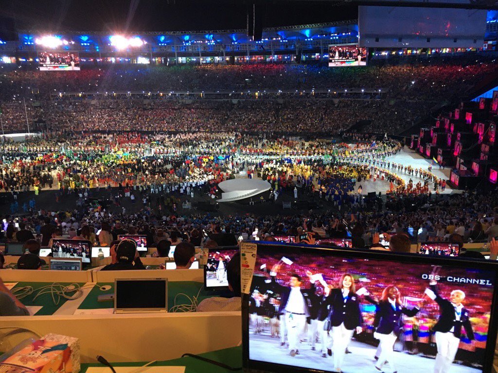 History is made as #RefugeeOlympicTeam enters the stadium. Show your support! http://bit.ly/2b6gLVC  #Rio2016pic.twitter.com/c462xbGRPU