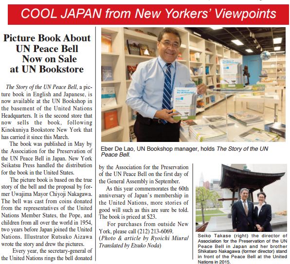 Featured in @NY_Seikatsu : Picture book about UN Peace Bell now on sale at #UNBookshop http://bit.ly/2bJj7OX pic.twitter.com/WJMuhJuKKk