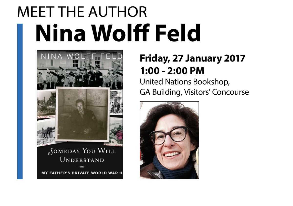 Meet Nina Wolff Feld, author of Someday You Will Understand at #UNBookshop 27 Jan at 1pm. RSVP http://bit.ly/2k1kfvO  #HolocaustRemembrancepic.twitter.com/CeEZxf4CFV