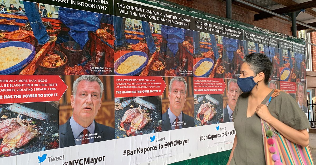 #COVID19 transmission (no social distancing), and risk of zoonotic disease spillover from animals to humans, will@NYCMayor#BanKaporos this year?#Kaporos = largest U.S.#wetmarket AND customers handle the animals. 100+ posters in NYC.pic.twitter.com/R3yypYhUlz