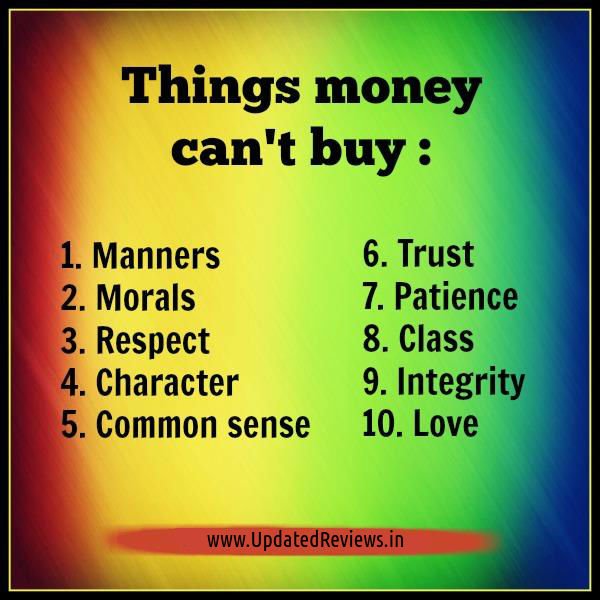 Things money can't buy: manners, morals, respect, character, common sense, trust, patience, class, integrity and LOVE. http://bit.ly/2GR86Jz