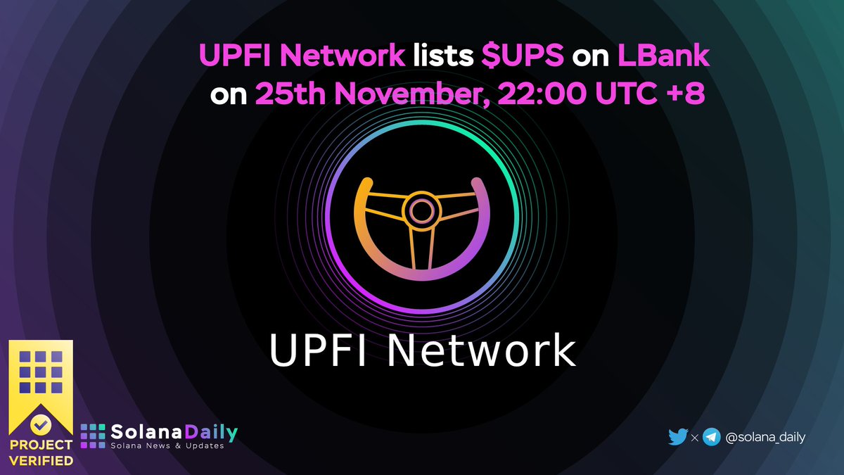 $UPS will be listed on LBank at 22:00 on November 25 (UTC+8)! @upfi_network UPFI Network is the fractional-algorithmic#stablecoin protocol on#Solana