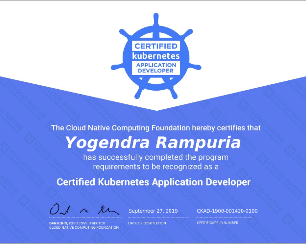 Delighted to pass Certified #Kubernetes Application Developer (#CKAD) from @CloudNativeFdn @linuxfoundation. Most practical test I have ever done. Thanks @mmumshad/@udemy for a concise course. And most of all my family, freinds & colleagues @pivotalpic.twitter.com/3nPuzlovJ5