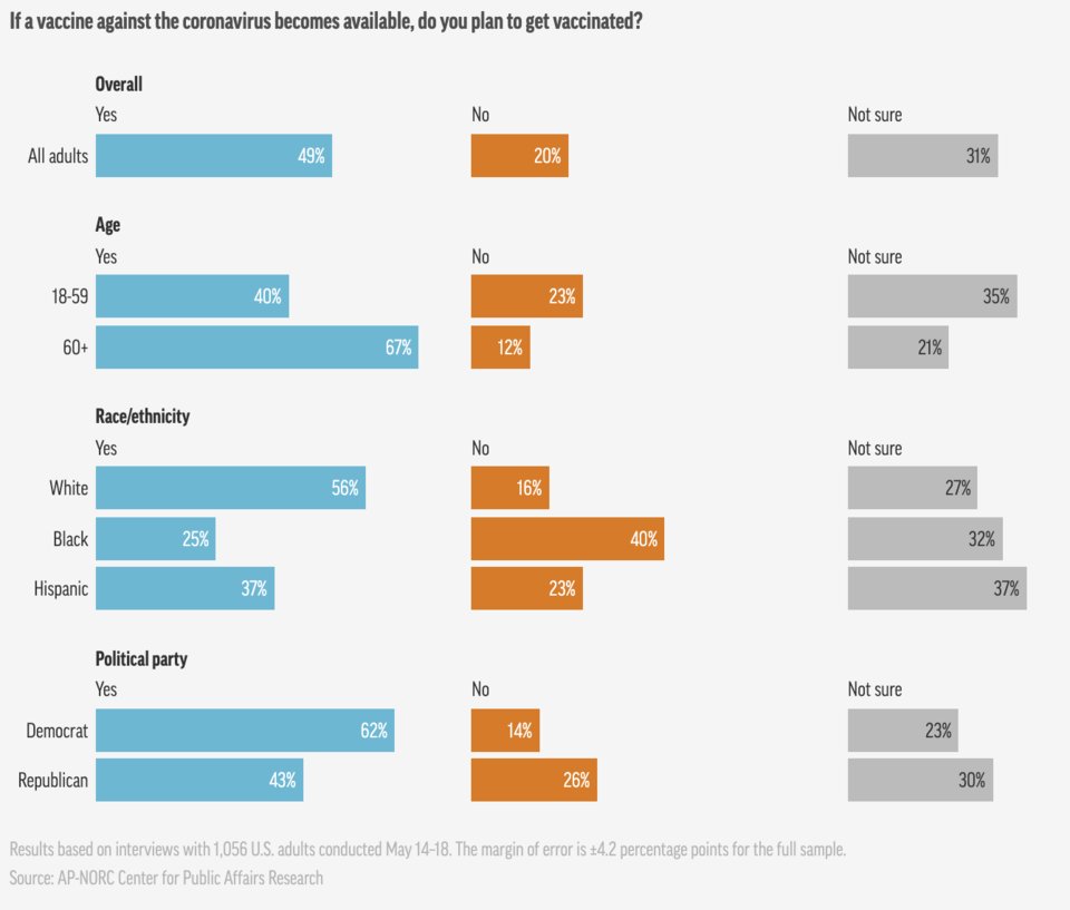 "Only about half of Americans say they would get a COVID-19 vaccine if the scientists working furiously to create one succeed, a number that’s surprisingly low considering the effort going into the global race for a vaccine." https://apnews.com/dacdc8bc428dd4df6511bfa259cfec44 …pic.twitter.com/4sF13KBuCq