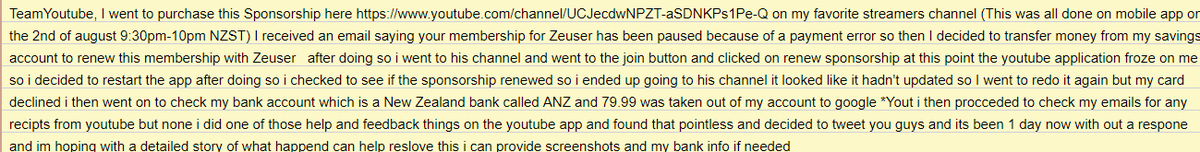 @TeamYouTube I tried tweeting you yesterday and didn't get no response what so ever here's a more in-depth explanation of what has happened and hopefully everything that is needed to know to resolve this the longer it is left without being noticed then the madder I getpic.twitter.com/v6HqEJCZqG