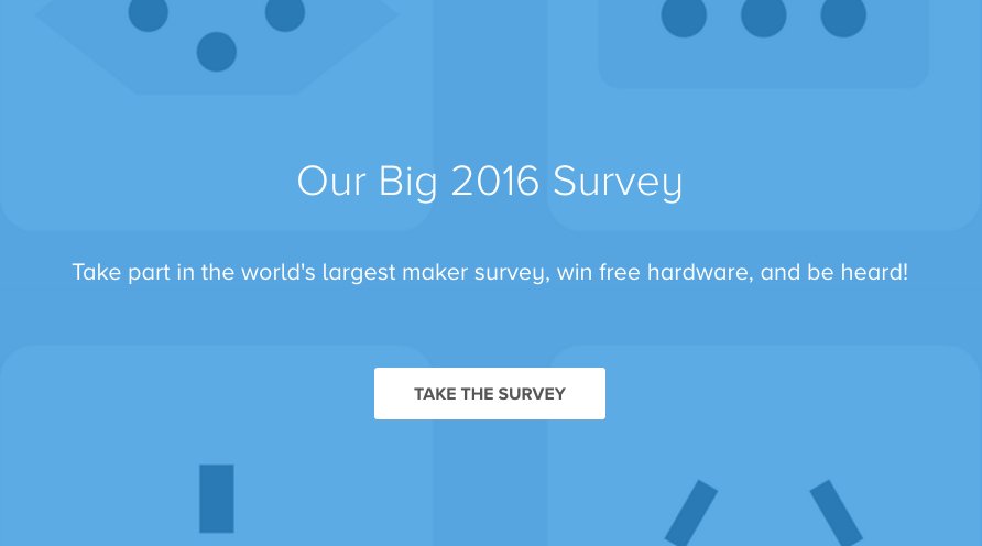 Have you taken the world’s largest survey for Makers yet? Be heard, and win free boards! http://bit.ly/1rPxy62 pic.twitter.com/6AVwd08mq9