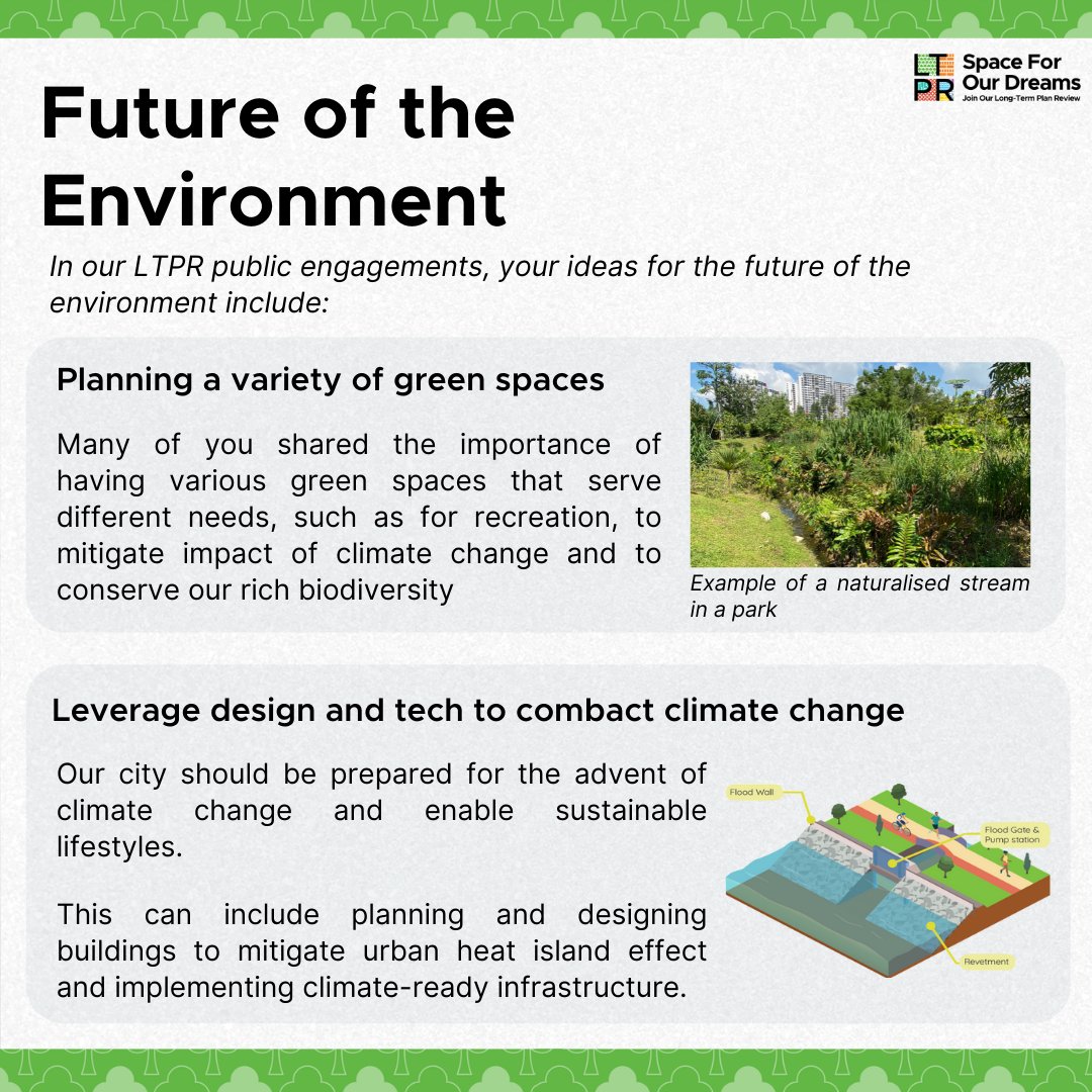 Making Singapore green to create a quality living environment has been a key goal for urban planners since the 1960s. As part of the Long-Term Plan Review, we have developed possible planning strategies for Singapore's next chapter. More at: http://go.gov.sg/ltprstrats pic.twitter.com/yj2OH1UE78