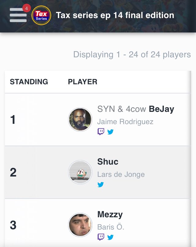 I won 1st out of 24 in Tax Series 14, the last edition. Very proud with my performance in this one, and had alot of fun/matchup exp too. Ggs everyone https://smash.gg/tournament/tax-series-ep-14-final-edition/events/ultimate-singles/standings …pic.twitter.com/IN0c4MTsoR