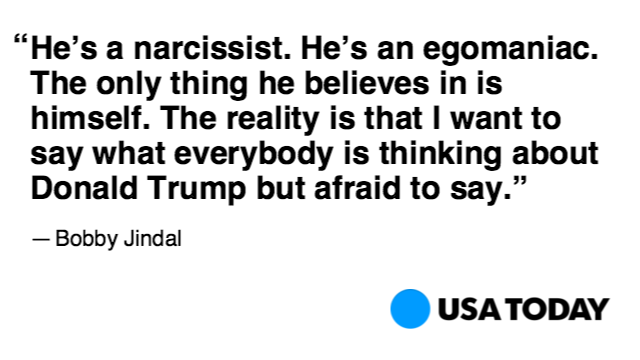 .@BobbyJindal blasts @realDonaldTrump as 'a narcissist' http://usat.ly/1UJAGb5  via @dberrygannettpic.twitter.com/MKUKzJuwWu
