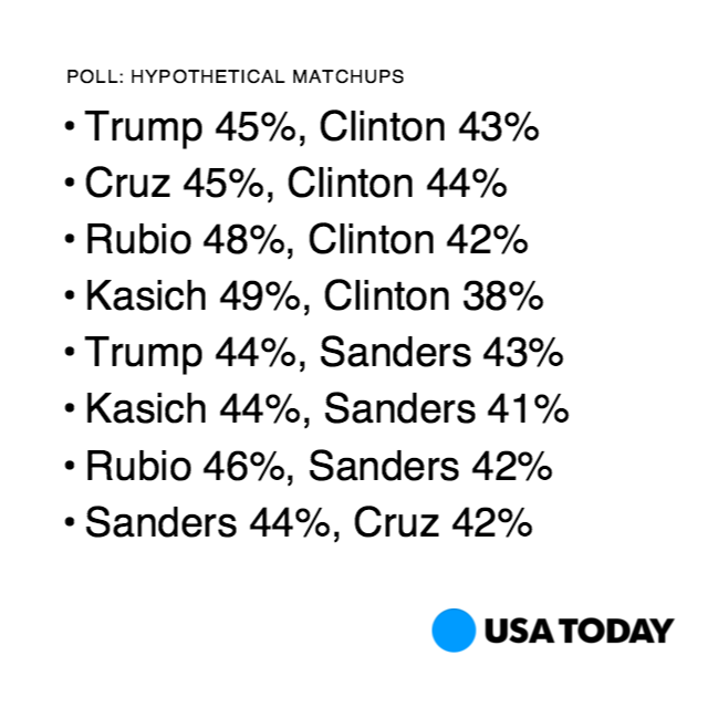 USA TODAY/Suffolk poll: Sanders has slight edge over Clinton in hypothetical matchups http://usat.ly/1oK1381 pic.twitter.com/igmiedqRTN