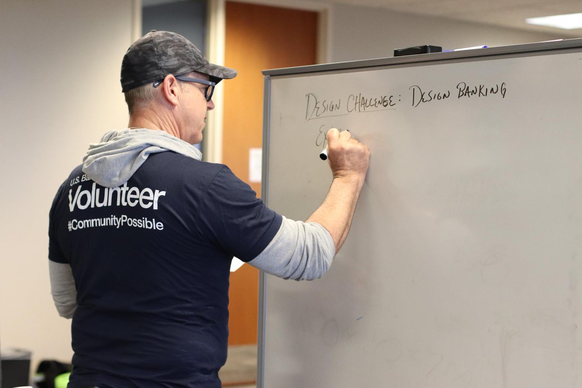 Fresh perspectives and seasoned pros: Students from the University of St. Thomas are brainstorming new ideas for bank tech with our innovation team.
