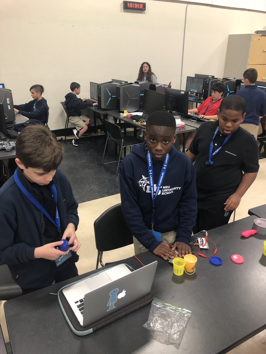 @uschool_nsu 6th grade coding and robotics students’ summative Makey-Makey engineering design process project. Different materials used as game controllers: bananas, oranges, apples, foil, Play-Doh, Jell-O, and pencils!pic.twitter.com/qlEodcOCHq