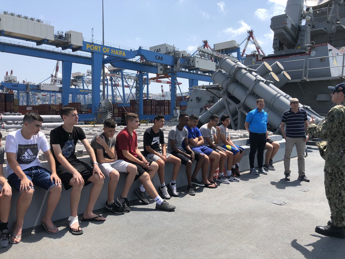 The Commanders and sailors of USS Donald Cook presently anchored at Haifa Port, hosted the Kiryat Yam youth basketball team and students of Arab College of Education in Haifa. Thank you for the wonderful tour and hospitality. @US_EUCOM @USNavypic.twitter.com/jvxTvrvE1y