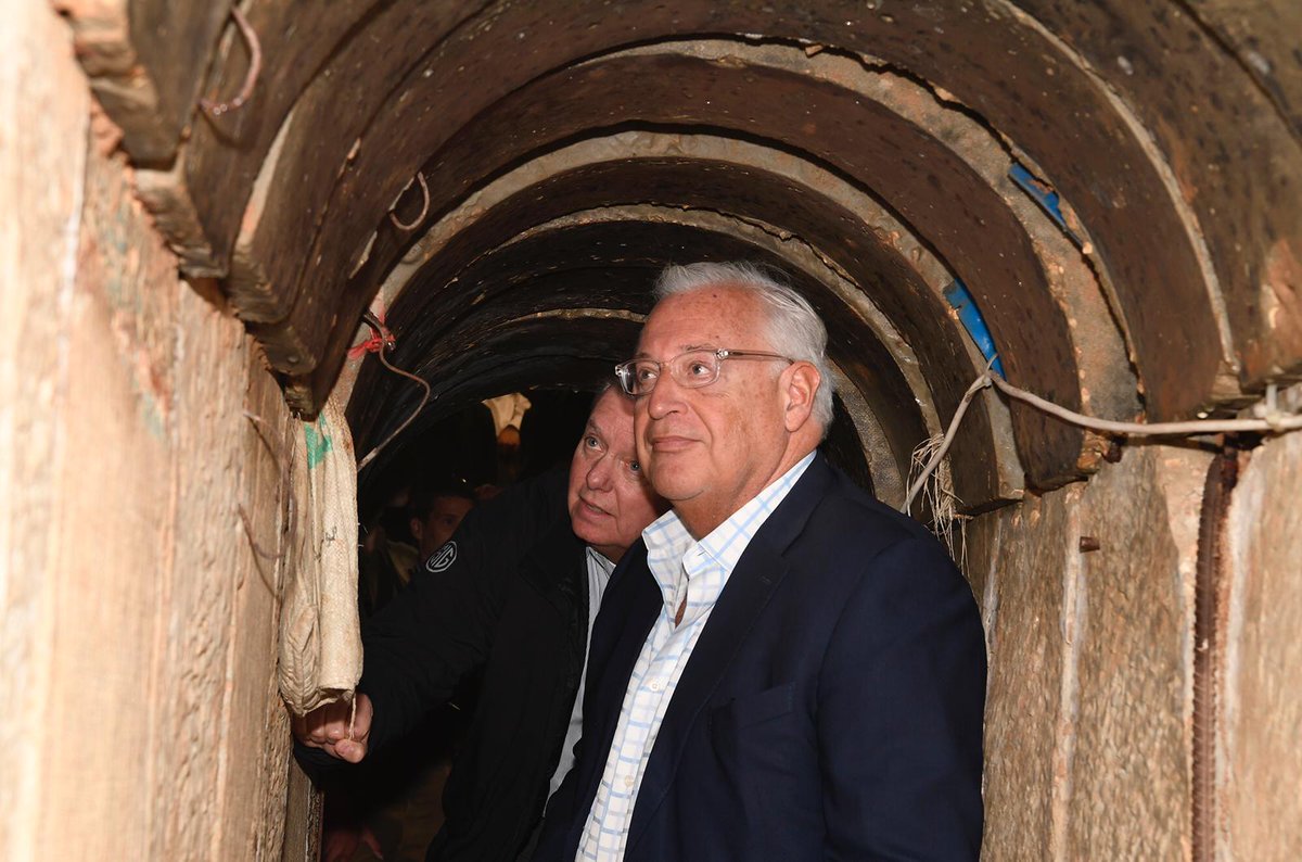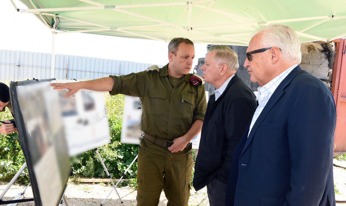 הסנאטור לינדסי גראהם ושגריר ארה"ב בישראל דוד פרידמן ביקרו היום בעוטף עזה, שם קיבלו תדריך מאלוף פיקוד הדרום, הרצי הלוי, וסיירו במנהרת טרור של חמאס שחשף צבא הגנה לישראל על הגבול בין ישראל לרצועה בלווית מפקד אוגדת עזה, תא"ל אליעזר טולדנו. @USAmbIsrael @LindseyGrahamSCpic.twitter.com/E4PsWT4wIa
