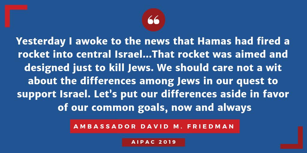 .@USAmbIsrael delivers remarks at #AIPAC2019pic.twitter.com/agl0qYM7d0
