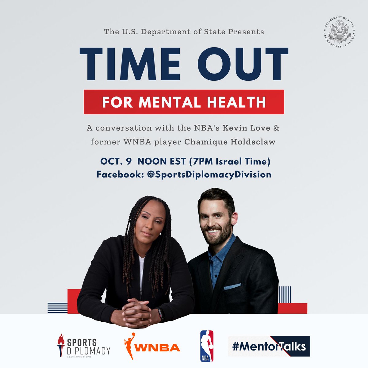 Even the world’s strongest athletes struggle with mental health. For years, @WNBA All-Star #ExchangeAlumni @Chold1 didn’t dare admit that she is bipolar. Learn about her journey on #MentorTalks Oct. 9 at 19:00 (#Israel time). https://www.facebook.com/SportsDiplomacyDivision … #WorldMentalHealthDaypic.twitter.com/F20bvCAkAB