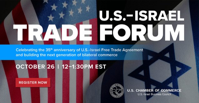 Happening now: The U.S.-Israel Trade Forum with @USChamber. Celebrating 35 years of free trade between our two countries, and highlighting opportunities for the years to come. https://events.uschamber.com/us-israel-trade-forum …pic.twitter.com/t8CNFQQuoj