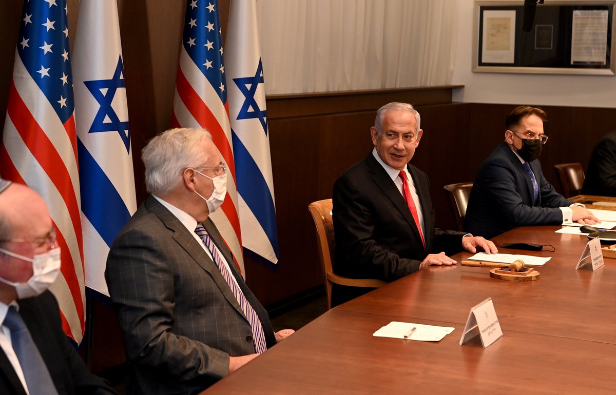 This morning, @IsraeliPM and government ministers said their farewells and presented a gift to @USAmbIsrael. Watch their full remarks here: https://fb.watch/33QsWrh-Cj/ pic.twitter.com/yK1r50ooNA
