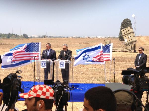 שר ההגנה האמריקני ליאון פאנטה ושר הביטחון אהוד ברק בביקור בסוללת כיפת ברזל בדרוםpic.twitter.com/BdrdRR5N