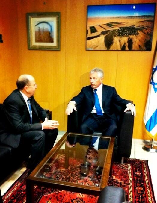 Photo: Secretary of Defense Chuck #Hagel meets with Defense Minister Moshe Yaalon.pic.twitter.com/qXlVo7H7wH