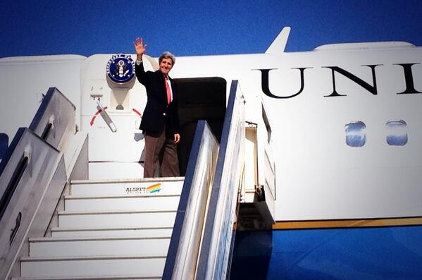 Sec of State @JohnKerry on his back to DC, after a long weekend of Middle East shuttle diplomacy. He'll be back soon @usembassyta @StateDept