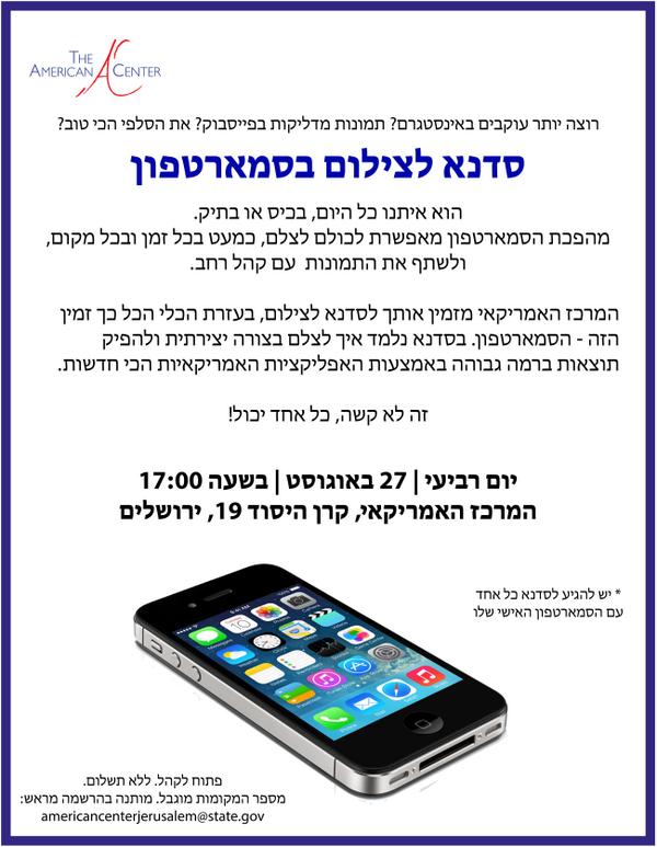 מרכז התרבות האמריקאי מזמין אתכם להשתתף בסדנא לצילום בסמארטפון. הכניסה חינםpic.twitter.com/I0cK6smu3t