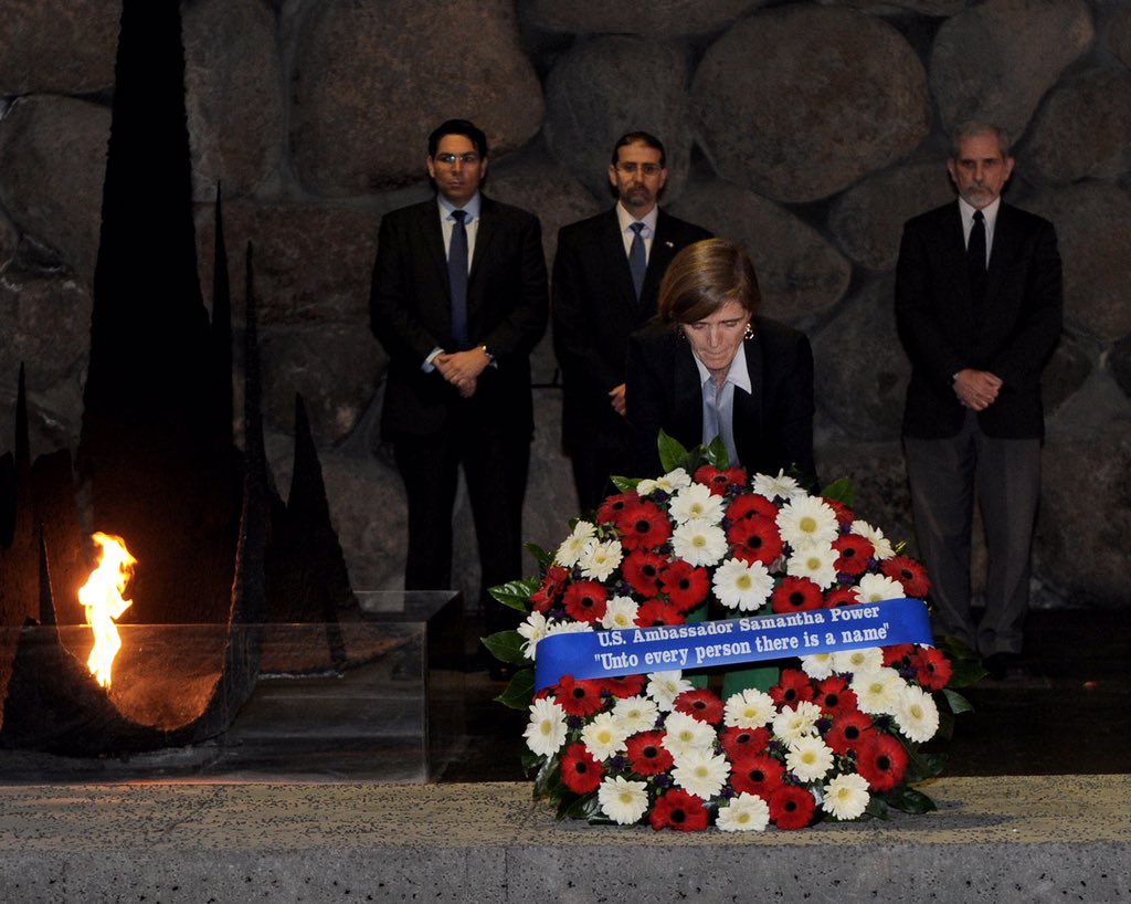 @usembassyta @yadvashem @AmbassadorPower And then she'll ask the prez to bomb Israel to submission.