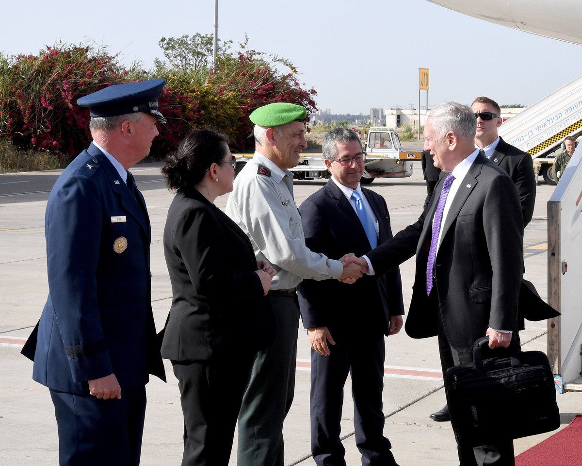 SecDef Jim Mattis arrived in Israel for a two-day visit. מזכיר ההגנה של ארה"ב ג'ים מאטיס נחת הערב בנתב״ג, לביקור בן יומיים.Welcome to Israelpic.twitter.com/4KArBcATvA