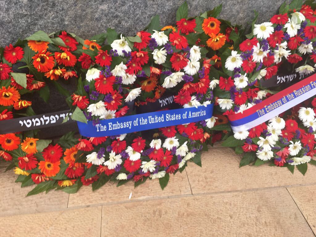 Chargé Leslie Tsou honored to lay wreath @yadvashem in honor of #VEDay72 Jewish soldiers and partisanspic.twitter.com/nmEzfe1ear