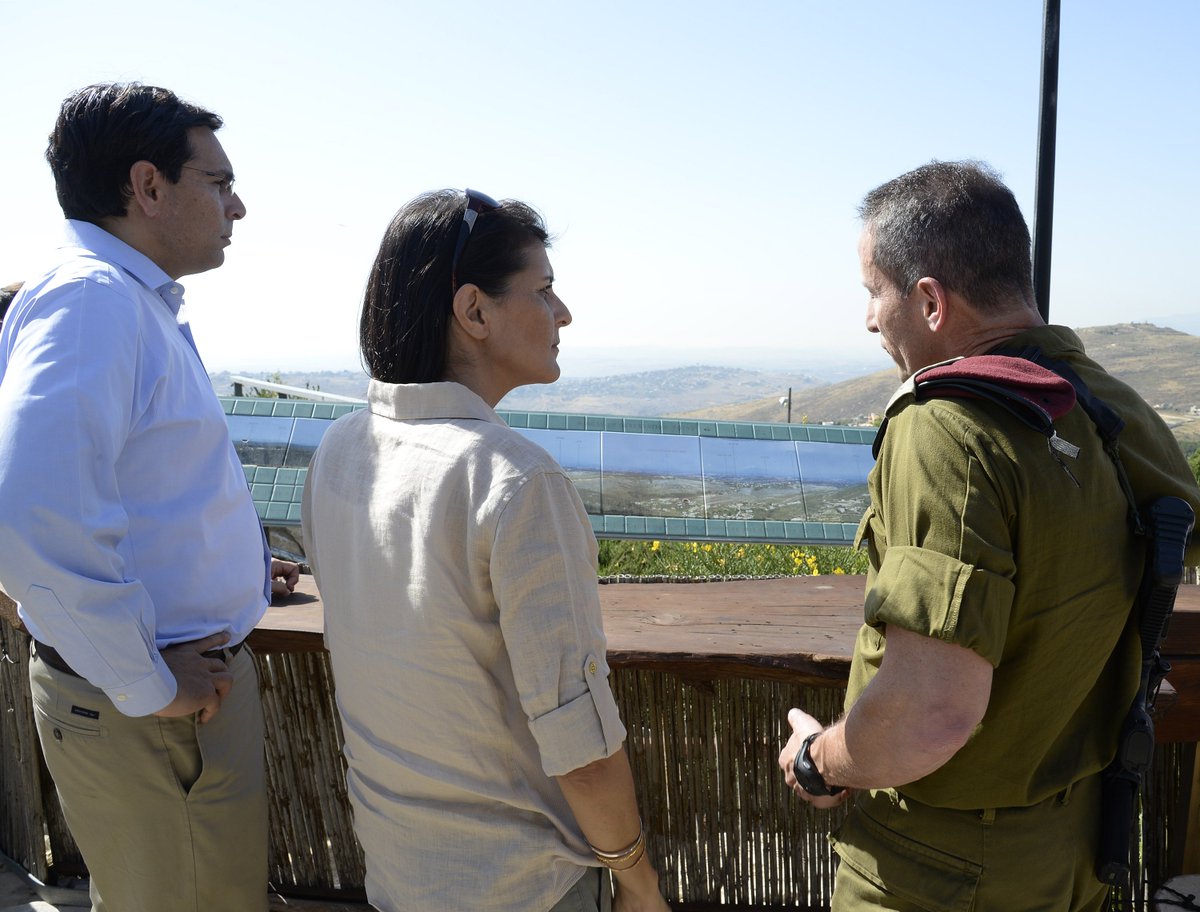 שגרירת ארה"ב לאו"ם ניקי היילי ביקרה היום, 8 ביוני 2017, בקיבוץ משגב עם על גבולה של ישראל עם לבנון, שם צפתה על הנעשה בגבולpic.twitter.com/cC8OwYow88