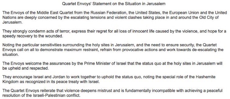 Quartet Envoys' Statement on the Situation in #Jerusalem: http://go.usa.gov/xRZwm pic.twitter.com/a2QLJhQcZ9