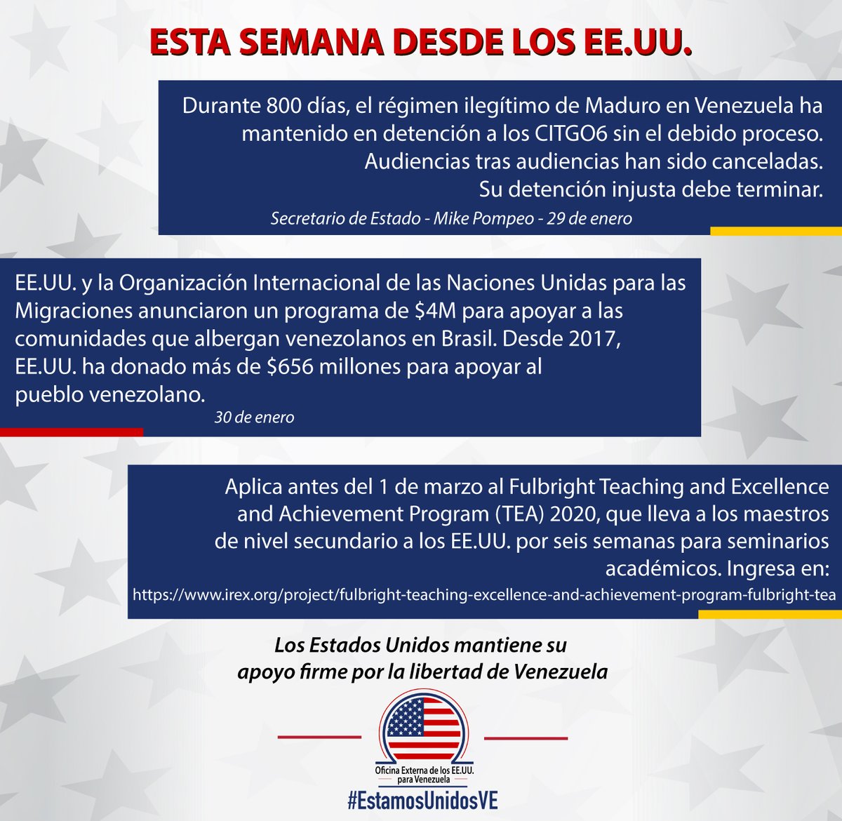 Conoce las noticias y declaraciones de los EE.UU. más importantes de esta semana. Seguimos apoyando a los venezolanos para restablecer la democracia en Venezuela