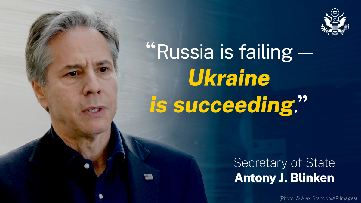 @SecBlinken: When it comes to Russia’s war aims, Russia is failing, Ukraine is succeeding. Russia has sought as its principal aim to totally subjugate Ukraine — to take away its sovereignty, to take away its independence. That has failed. https://go.usa.gov/xu5Cm pic.twitter.com/XMlO40BoZe