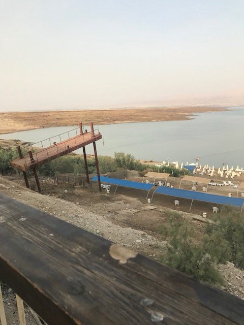 Yesterday we witnessed the enrivronmental degradation of the Dead Sea coastline due to excessive extortion of water by the Israelis. The boardwalk below is where the coastline reached 10 years ago.