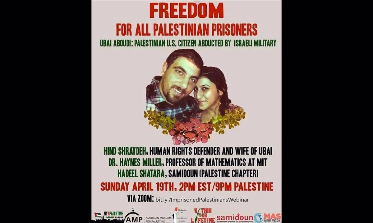 #PalestiniansPrisonersDay virtual actions continue tomorrow! Join NY4Palestine Coalition & hear about the case of Ubai Aboudi, a Palestinian US citizen that was abducted by Israeli military.