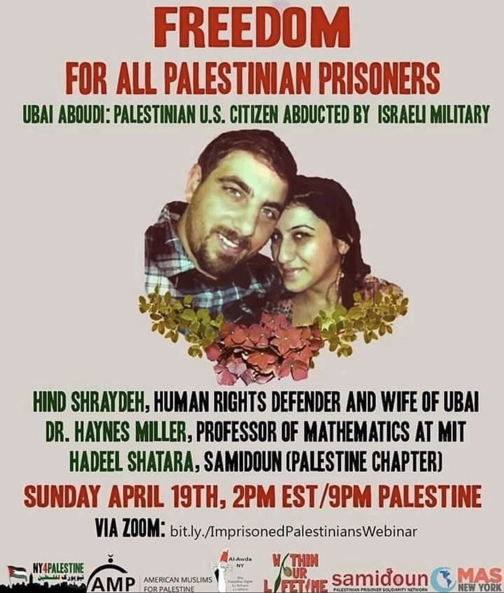 Don’t forget to tune in to this webinar 20 mins to hear about Ubai Aboudi’s case. Put together by NY4Palestine Coalition!