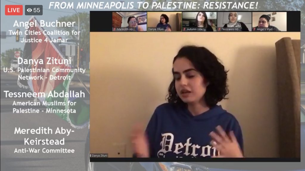 “US police departments participate in exchange programs with the Israeli Occupation Forces, and those programs are funded by Zionist organizations and lobby groups masked as human rights organizations” - Danya Zituni, USPCN-Detroit Chapter. Follow live: https://www.facebook.com/AntiwarMN/videos/756441811591259/ …pic.twitter.com/KBObzRpmGJ