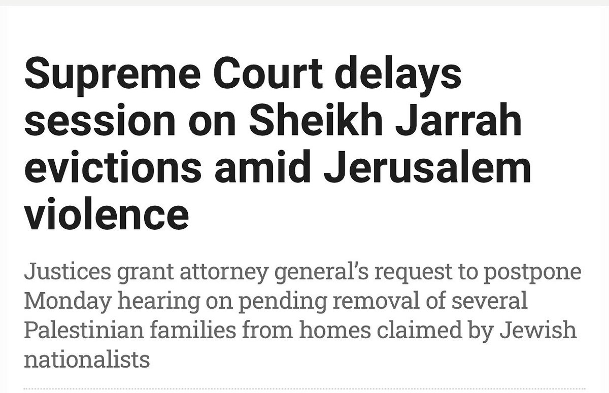 A small people’s victory, BUT the fight is not over. Its an attempt by israel to stifle the worldwide momentum around #SaveSheikhJarrah We must be ready to protest & continue pressuring congress do something beyond statements of support!