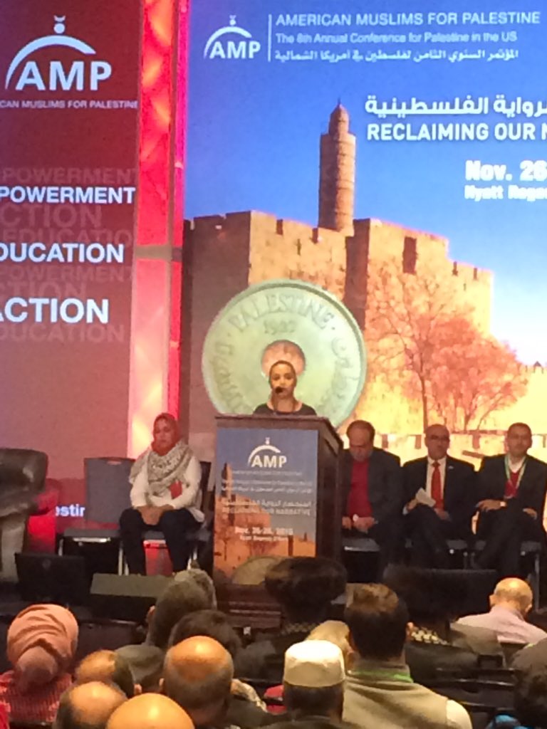 Nesreen Hasan giving the USPCN statement at @AMPalestine conference.pic.twitter.com/i02d3khHJG