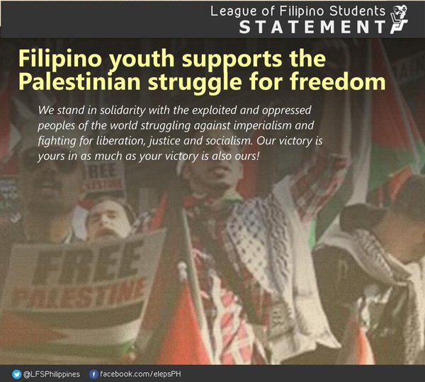 .@LFSPhilippines statement of support for Palestinian Freedom Struggle http://samidoun.net/2016/03/league-of-filipino-students-filipino-youth-support-the-palestinian-struggle-for-freedom/ … via @SamidounPPpic.twitter.com/pOlaB7UVbK