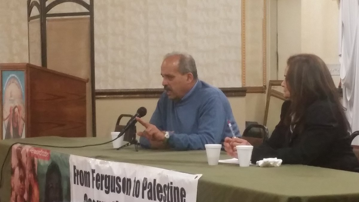 .@PGFTU's Manawel Abdel-Al speaking about Israel’s #apartheid policies in #Jerusalem, w #Justice4Rasmea looking on.pic.twitter.com/iAXQUi33Ip